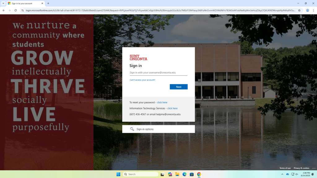 2. Next, you will be asked to sign in with your SUNY Oneonta username and password.